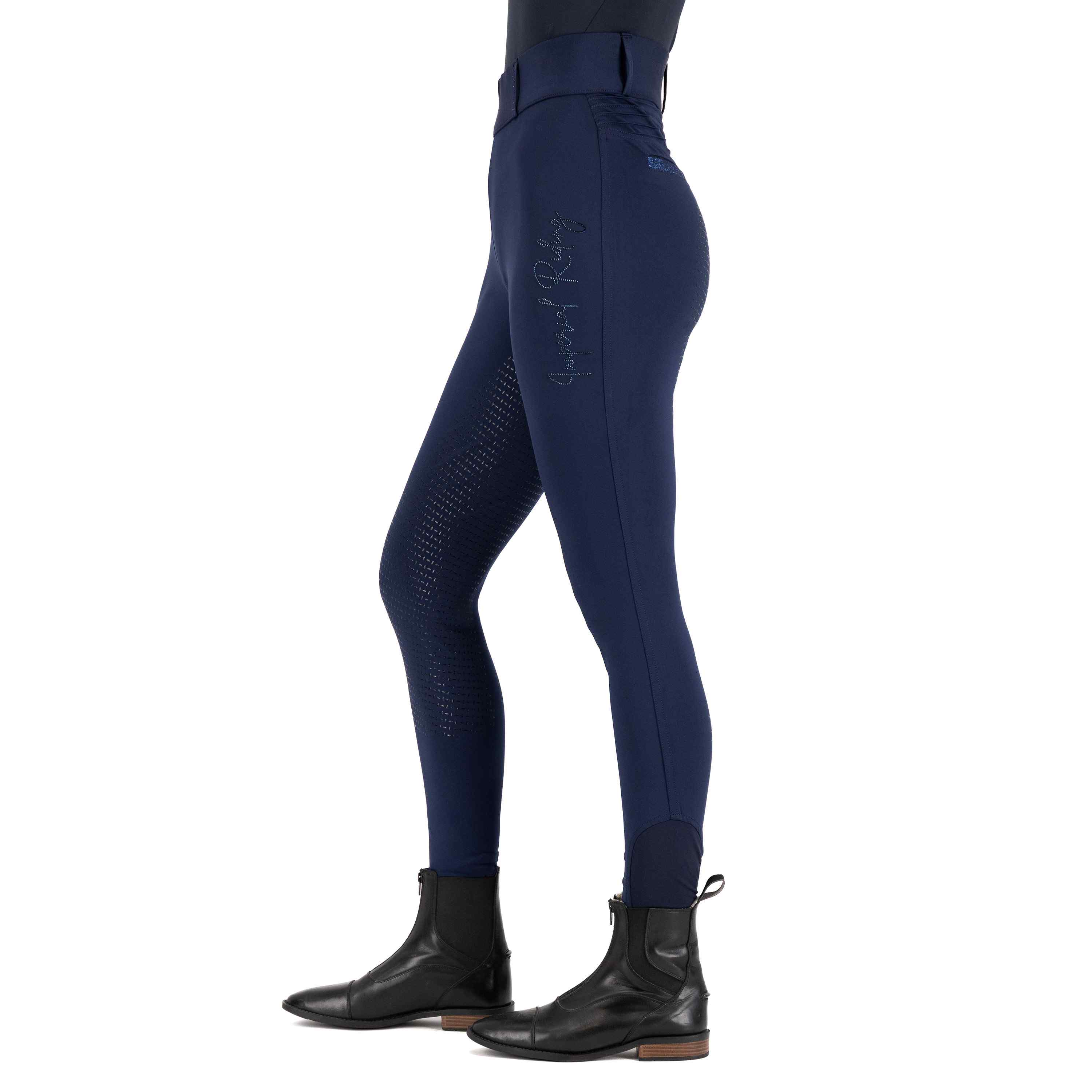 Die Absteppungsdetails an der Rückenpasse und das Logo mit Strasssteindetails verleihen diesen Reithosen einen schicken und anspruchsvollen Look. Der Silikon-Grip im Gesäßbereich sorgt für zusätzlichen Halt im Sattel, während der weiche und angenehme Stoff eine bequeme Passform gewährleistet.