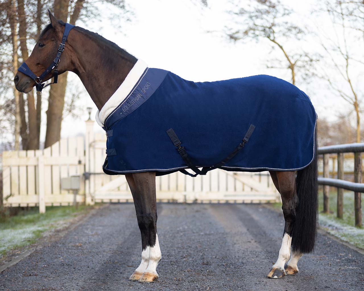 Die glitzernde Zierkordel und der Schriftzug „Equestrian Sports“ am Kragen vervollständigen den edlen Look dieser Decke.