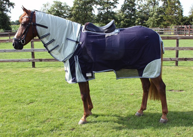 Die Decke ist mit einer Aussparung für den Sattel ausgestattet, Gehfalten, Beinschnüren und Schweiflatz. Sehr gute Verarbeitung sowie angenehm leichtes, athmungsaktives Material. Der ideale Schutz vor Insekten bei Ihrem Sommerausritt.