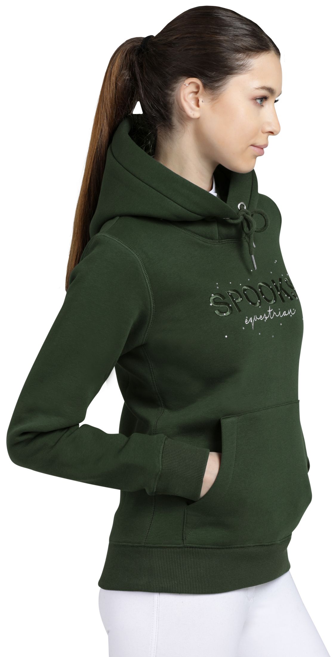 - Silberne SPOOKS-Stickerei auf der Kapuze